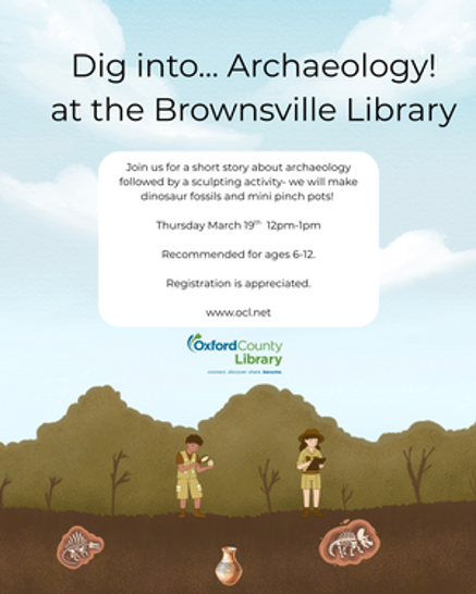 On Thursday March 19th from 12pm-1pm, join us for a short story about archaeology followed by a sculpting activity- we will make dinosaur fossils and mini pinch pots! For ages 6-12. Registration is appreciated.