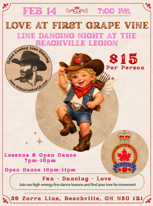 Love at First Grape Vine! Line dancing night at the Beachville Legion.