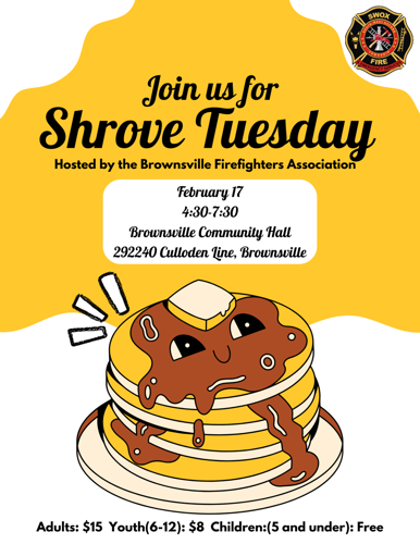 Join the Brownsville firefighters as they flip pancakes and bring the community together for Shrove Tuesday (Pancake Day)! Come enjoy delicious pancakes, good company, and a great cause.