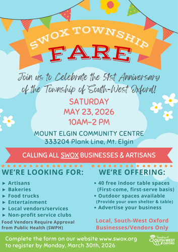 Join us for the SWOX Township Fare – an event held to celebrate the 51th Anniversary of the Township of South-West Oxford.